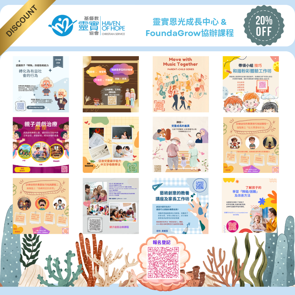 另外,參加者更可享 八折優惠 報讀由 靈實恩光成長中心 及 FoundaGrow 協辦的課程,誠邀您把握機會!
